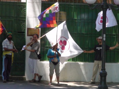 Los delegados de la ecoaldea más Kloketen de la Coordinadora pro bandera de la Paz, depositaron la carta a la espera de una respuesta, portando banderas de la paz y la whipala. Un coronel del ejército Chino quiso saber mayores antecedentes del accionar de esta delegación, a lo que se le explicó a él como a otros funcionarios de la embajada que llevábamos la bandera oficial de la Paz del Estado de Chile y de todas las Naciones americanas como símbolo de buena voluntad para cooperar con los gobernantes en lograr el éxito de la transición de la sociedad que vivimos a una era de paz.