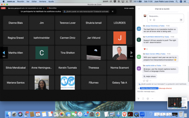Juan Pablo Lazo. Plantea el valor de la diversidad de puntos de vista para atraer la Paz. Expreso que la crisis es global y que en Chile estamos en momento constituyente, y podemos declarar la constitución no de un nuevo Chile sino de una nueva sociedad global. Para ello, la estrategia central creemos que es la construcción de comunidades de práctica de estilos de vida virtuosos, pacíficos y amables. Lo cual implica aprender a escuchar profundamente y entablar diálogos empáticos.