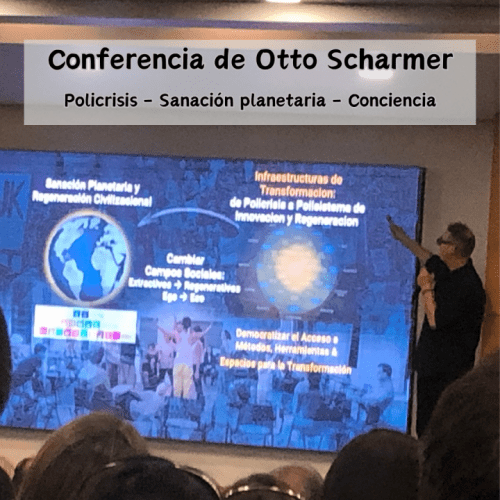 Otto Scharmer y una lámina explicativa sobre la sanación planetaria y la regeneración civizacional