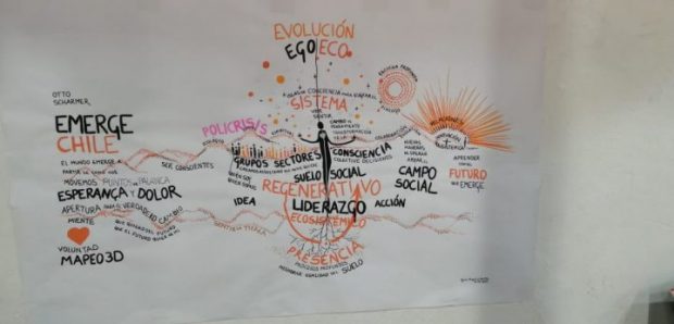 Escuchando a Otto Scharmer volvimos a valorar ciertas cualidades de esta sociedad chilena que, como he comentado previamente ha hecho la labor con el estallido social, para mirarse a sí misma, para escucharse sus dolores, sus visiones, para sanar y para reinventar acuerdos con los cuales poder sustentar la vida. Indudablemente el proceso constituyente sigue vivo en instancias como Emerge Chile.