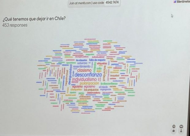 En nuestro grupo las primeras tres palabras tuvieron que ver con la desconfianza, el clasismo y el individualismo; lo cual sintonizó con todo el gran colectivo presente en el Emerge Chile.
