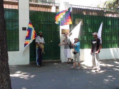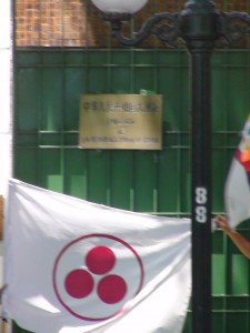 Los delegados de la ecoaldea más Kloketen de la Coordinadora pro bandera de la Paz, depositaron la carta a la espera de una respuesta, portando banderas de la paz y la whipala. Un coronel del ejército Chino quiso saber mayores antecedentes del accionar de esta delegación, a lo que se le explicó a él como a otros funcionarios de la embajada que llevábamos la bandera oficial de la Paz del Estado de Chile y de todas las Naciones americanas como símbolo de buena voluntad para cooperar con los gobernantes en lograr el éxito de la transición de la sociedad que vivimos a una era de paz.