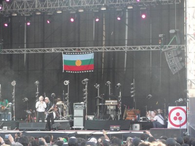El Banderazo por la Paz del primer día fue todo un éxito. Los Jaivas subieron esta bandera al escenario. El sector de la Aldea alzó el baile hacia los vientos… la biodanza presente. En definitiva ha gestado un escenario de ardiente fuerza para crear paz. Algunos miembros de la Coordinadora Pro Bandera de la Paz en backstage-camarines pudimos sacarnos fotos con artistas de alcurnia.