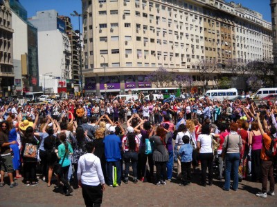 El 11.11.11, en múltiples plazas del sur de América se reunieron personas a realizar banderas humanas de la paz. Abajo, la foto de Buenos Aires.