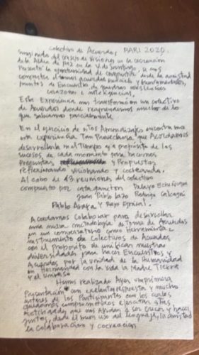 En el consejo de Marzo del año 2020 el colectivo pudo exponer a través del abuelo Rayo Espiral un testimonio sobre nuestras reflexiones y acuerdos.
